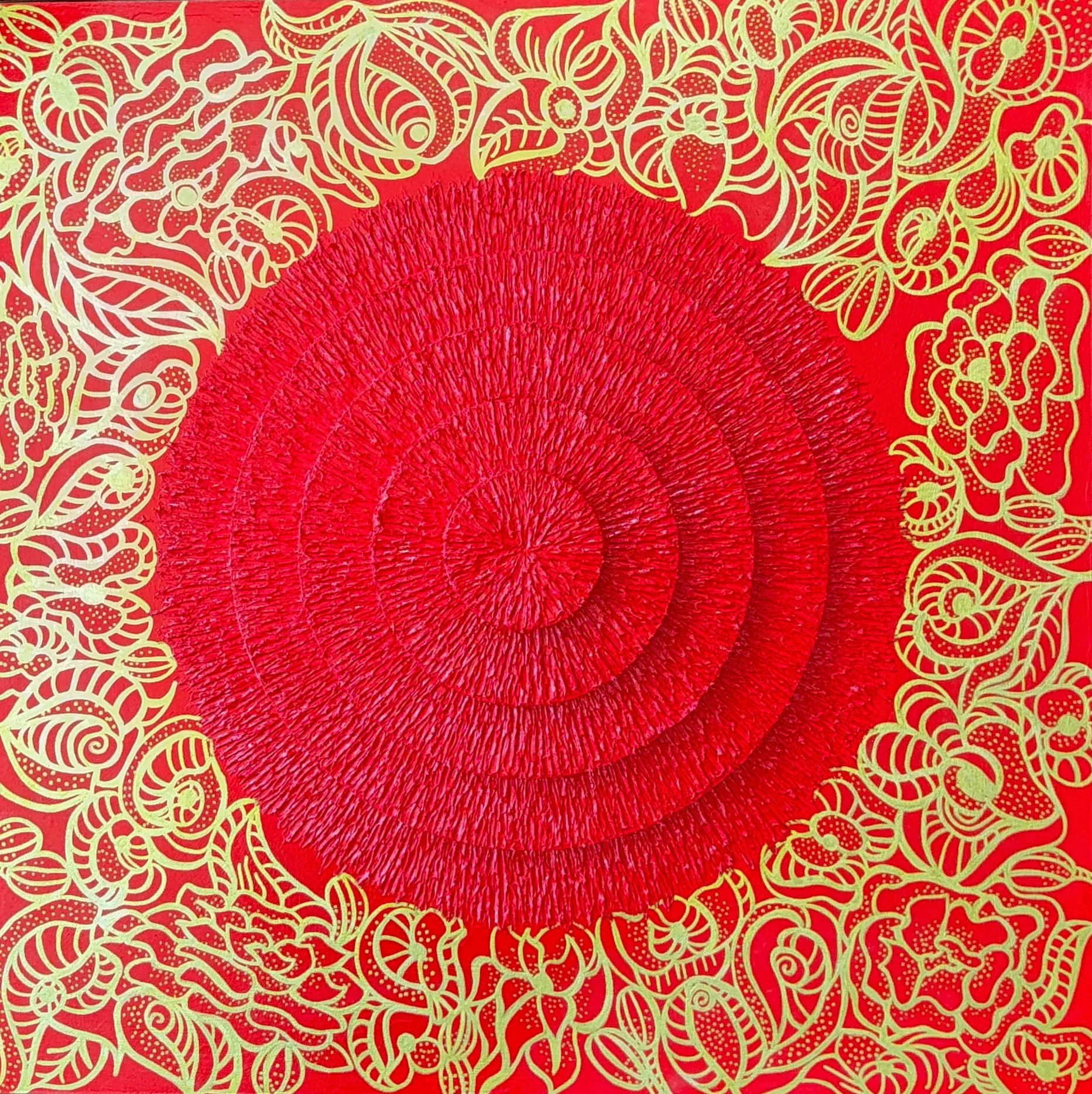 Fire Within - Acrylic and Mixed Media on Wooden Panels, 30” x 30” - by Mais Al-Sheikhly